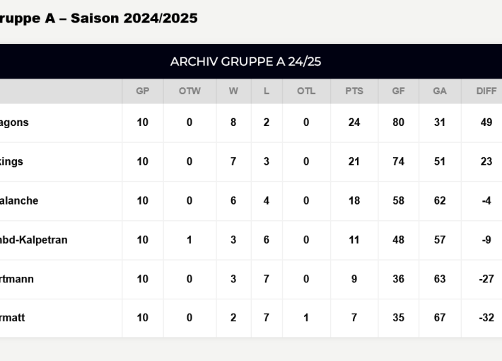 Die Vikings schliessen eine erfolgreiche Saison auf Tabellenplatz zwei ab. Nach einem gelungenen Saisonstart war man in den entscheidenden Schlussspielen nicht in der Lage, die nötigen Punkte und somit den allfälligen Meistertitel zu sichern. Wir Danken allen Sponoren und Unterstüzern und freuen uns jetzt schon auf die kommende Meisterschaft.